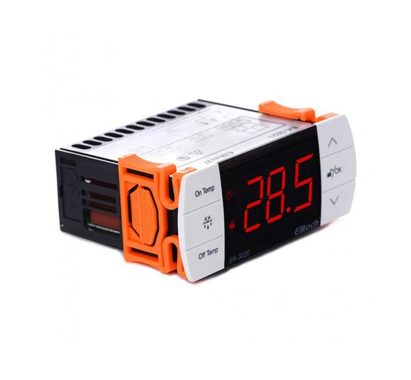 O Controlador de Refrigeração EK-3030 é adequado para o controle da temperatura baixa e média de armazenamento frio. Ele opera medindo e controlando a temperatura através de funções como: calibração de temperatura, degelo forçado, alarme de excesso de temperatura, alarme de falha de sensor.