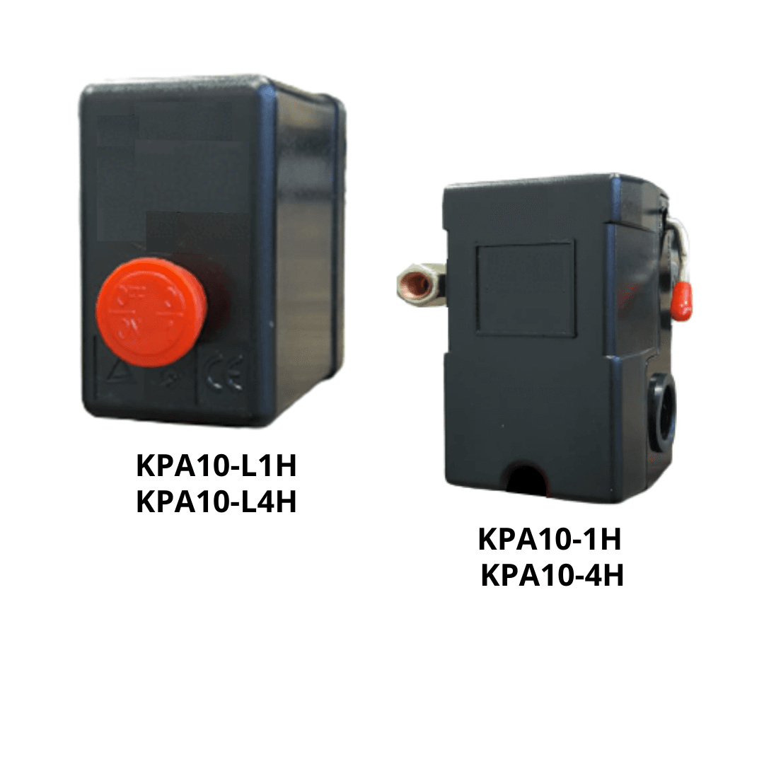 Pressostatos para Compressor – LF10-1H 1 VIA KPA10 são utilizados para regular a pressão do tanque entre dois valores predefinidos em compressores de ar de pistão (elétricos de pequeno porte, até 175 PSI). Dispõem de uma válvula de alívio para impedir que o compressor seja ligado sob carga. Também possuem alavanca ou botão para desligar o compressor manualmente.